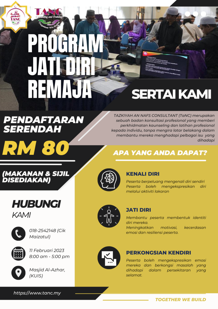PROGRAM AKADEMI LATIHAN TANC (BULAN MEI) Assalamualaikum FIRMA TAZKIYAH AN NAFS CONSULTANT Merupakan Pembekal Latihan Kaunselor Berdaftar dengan Lembaga Kaunselor Malaysia (PPP/LK/2022/00013). MEMBAWAKAN PROGRAM AKADEMI LATIHAN TANC BULAN: MEI 2023 […]